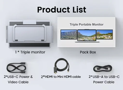 signal input for normal use. So you need to connect the power cable first and then connect the HD cable for it to work. Or, if you just need to cast the screen to the mobile phone, because the display requires a lot of power, the mobile phone itself cannot support the required power, please connect the 5V/4A power cable first, and then use this portable display with Type-C, you can Mirror your screen and instantly turn your small screen into a big one;